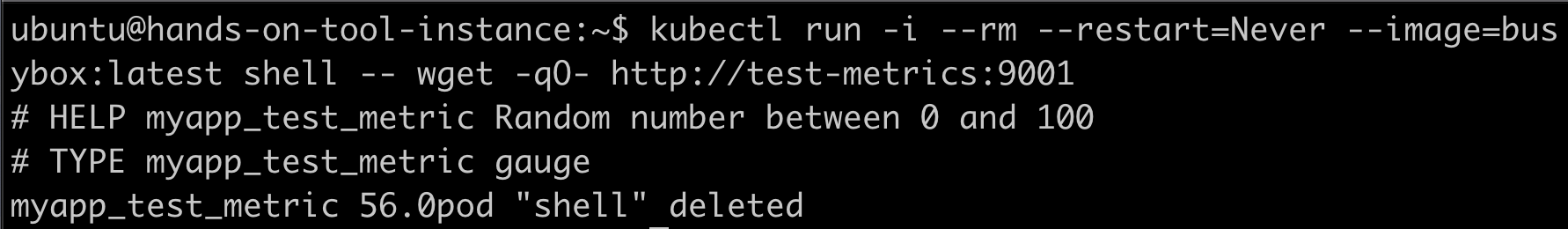kubectl run -i --rm --restart=Never --image=busybox:latest shell -- wget -qO- http://test-metrics:9001