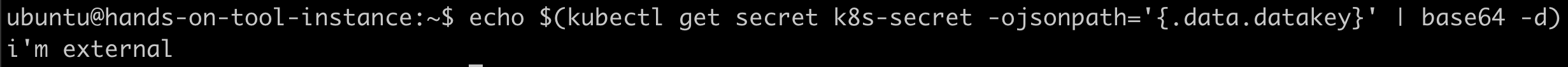 echo $(kubectl get secret k8s-secret -ojsonpath='{.data.datakey}' | base64 -d)