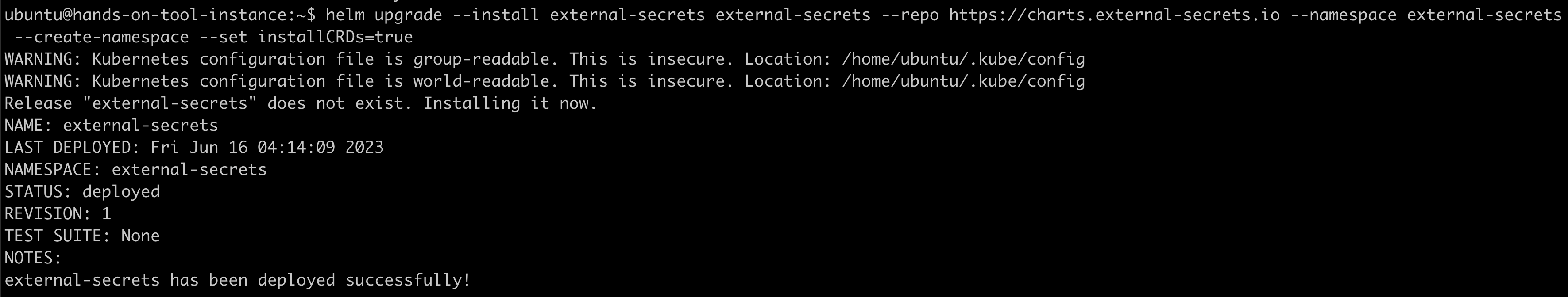 helm upgrade --install external-secrets external-secrets --repo https://charts.external-secrets.io --namespace external-secrets --create-namespace --set installCRDs=true